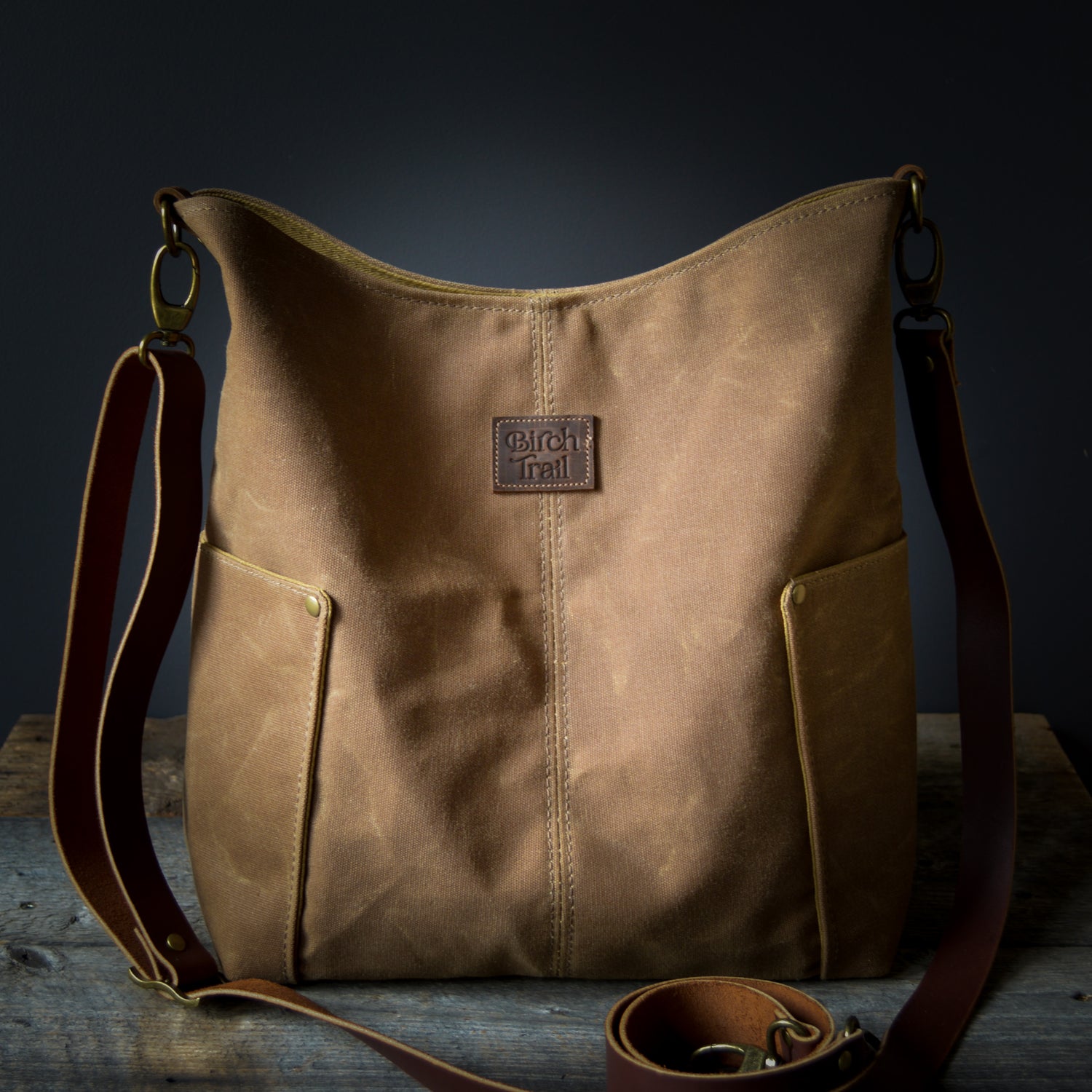 This durable and roomy "boho-inspired" shoulder bag is your all-purpose, carry most anything, go-to bag. The soft waxed canvas exterior is sturdy and will patina over time giving it a rugged, beautiful look. Re-waxing for water repellency is recommended.